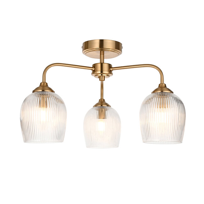 Dimmable Brushed aged brass plate & clear ribbed glass Constructed from steel & glass Read more.