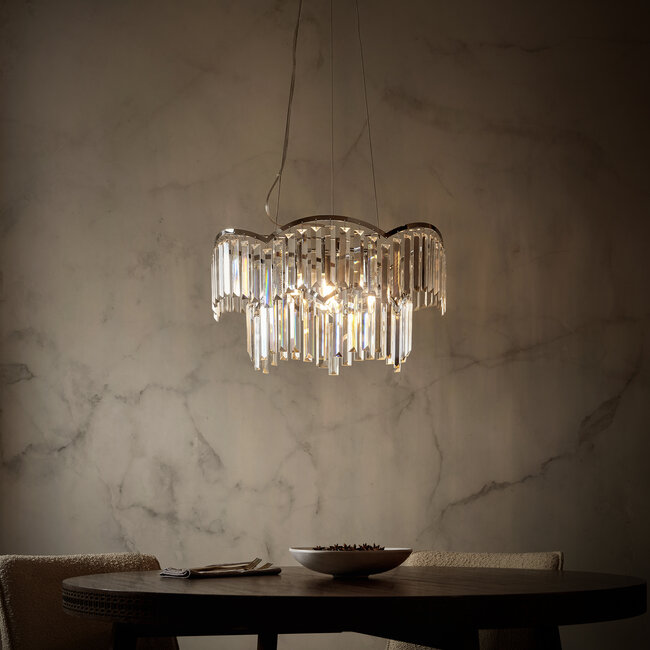 Dimmable Chrome plate & clear crystal glass Constructed from steel & crystal glass Read more.