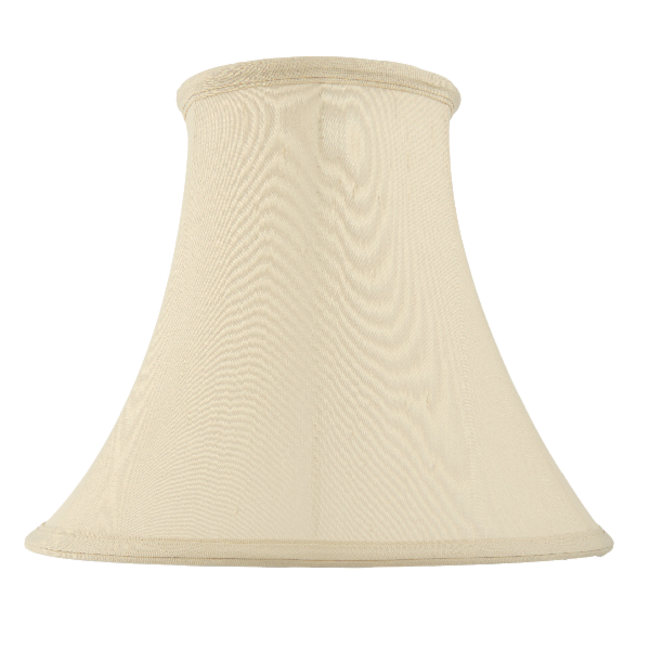 This 14 inch handmade cream lamp shade is shaped in a round bell design and has a double folded trim on the top and bottom. For use with a variety of lamp bases and available in a choice of sizes
