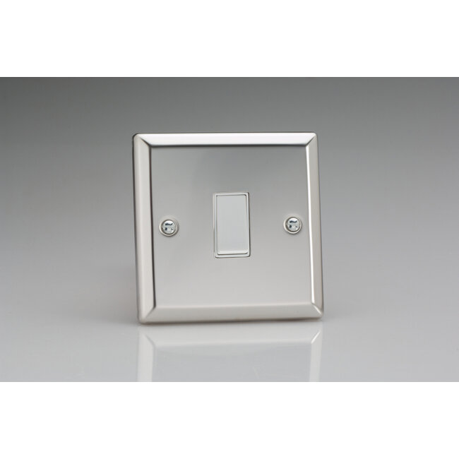 Varilight Classic 1-Gang 10A Retractive Switch White Mirror Chrome White Rocker