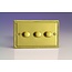 Varilight Classic 3-Gang 2-Way Push-On/Off Rotary LED Dimmer 3 x 0-120W (1-10 LEDs) (Twin Plate) V-Pro Georgian Brass Brass Knobs