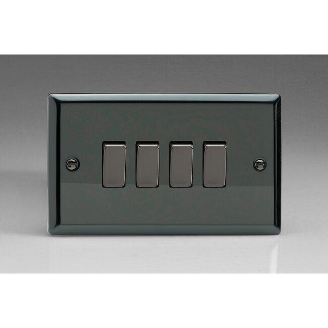 Varilight Classic 4-Gang 10A 1- or 2-Way Rocker Switch (Twin Plate) with Metal Rockers Decorative Iridium Iridium Rockers