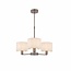 An understated modern 3 light pendant, mixing a sophisticated dark antique bronze plated finish with marble faux silk shades. Modern styling for today's interiors. Matching items also available.