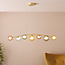 Dimmable Satin gold & multi coloured glass Constructed from steel & glass Read more.
