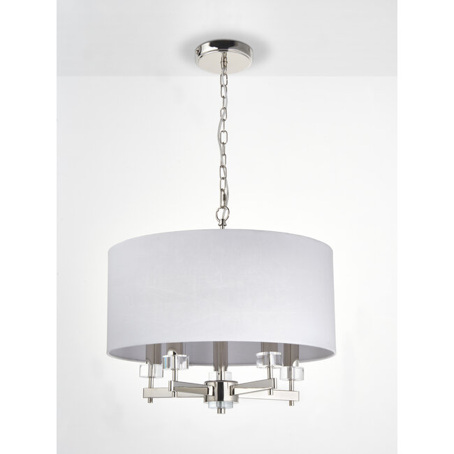 Dimmable Bright nickel plate Constructed from steel & glass & fabric Read more.
