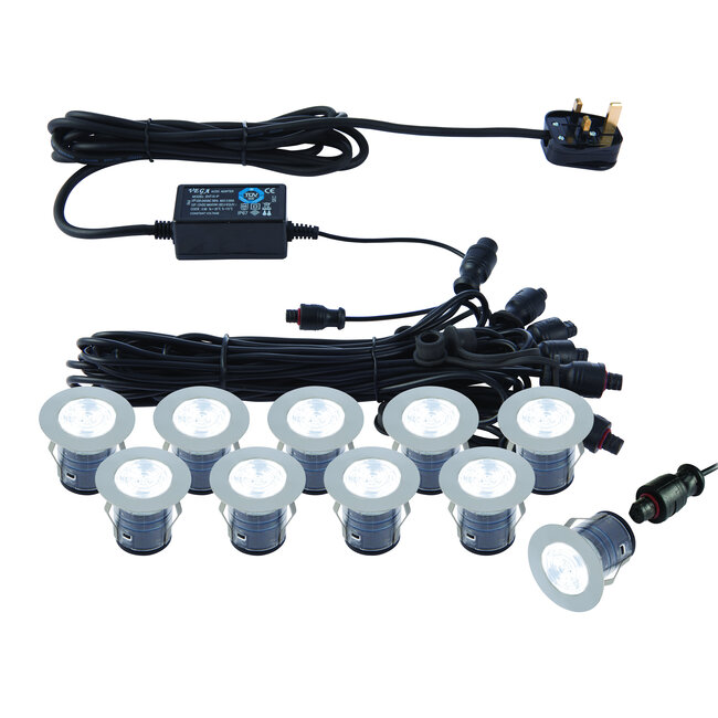Complete with LED driver 10 x 0.75W LED module (SMD 2835) Daylight White (Included) K: 6500 Lm: 280 Lm/W: 37 IP67 Proj: 0.41mm Dia: 35mm Class 2