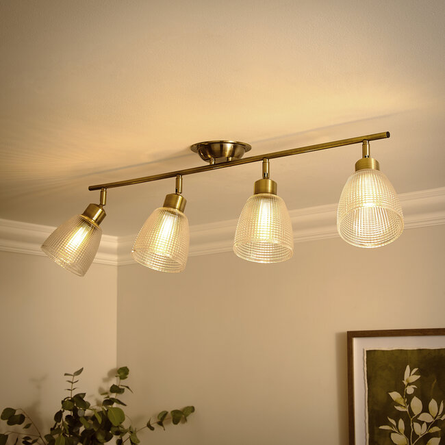 Dimmable Antique brass plate & clear Constructed from steel & glass Read more.