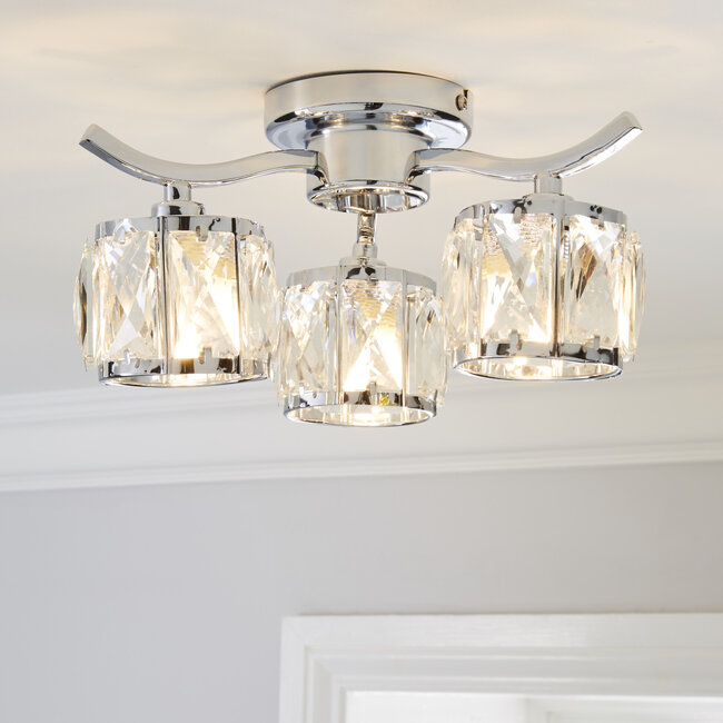 Dimmable Chrome plate & clear cut glass Constructed from steel & glass Read more.