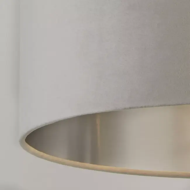 45cm light grey velvet Lux & Belle shade with silver inner is designed to work with any of the table or floor lamp bases in this range, or as a ceiling pendant, as a simple and effective way to update any room
