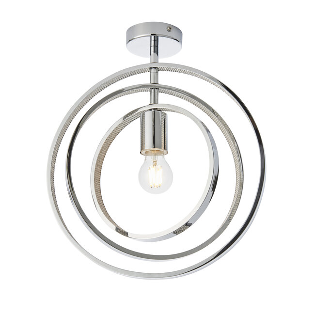 Stylish chrome plated semi flush light encrusted with thousands of clear faceted reflective detail. This captivating light fitting with adjustable hoop positions will add a contemporary edge to any bathroom and is IP44 rated.