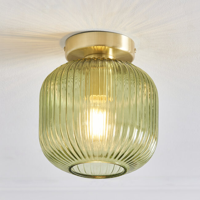 Dimmable Brushed brass & green Constructed from steel & grs glass Read more.