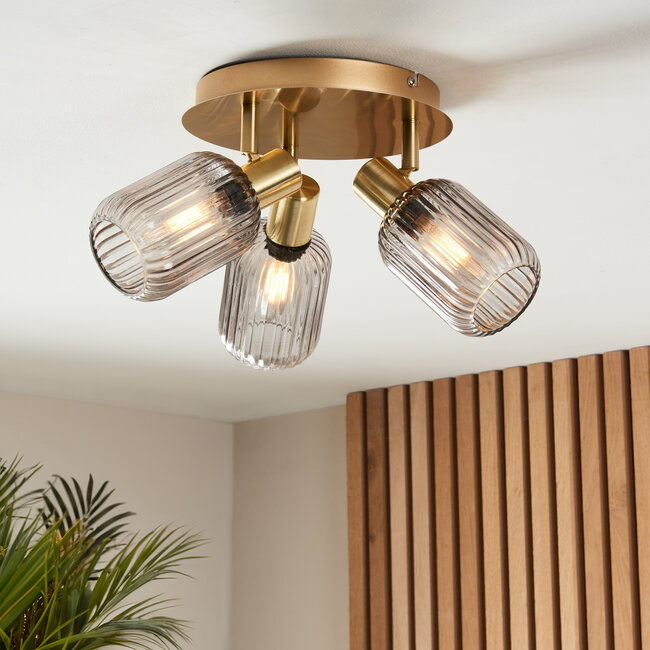 Dimmable Brushed brass Constructed from steel & glass (30% recycled) Read more.