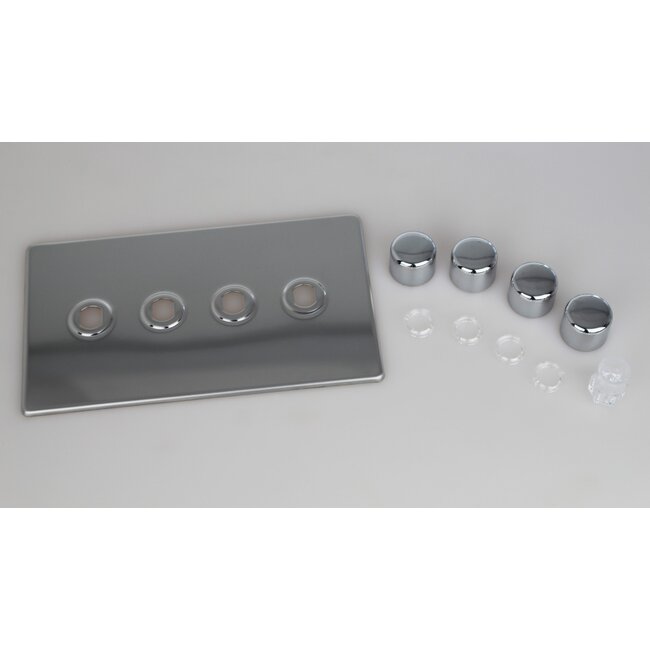 Varilight Screwless 4-Gang Matrix Kit For Rotary Dimmers (Twin Plate) Matrix Polished Chrome Chrome Knob