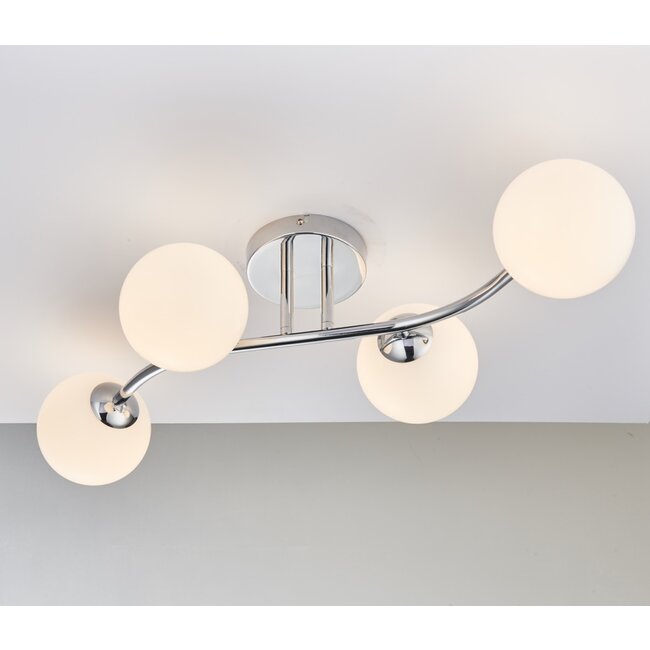 The Statera mixes a range of on trend looks into one fitting, highly reflective chrome plated arms and soft opal glass spheres combine in this multi-arm semi-flush design. Compact enough to create an impact even on low ceilings Read more.