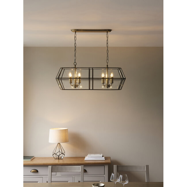 Dimmable Antique brass plate & clear glass Constructed from metal & glass Read more.