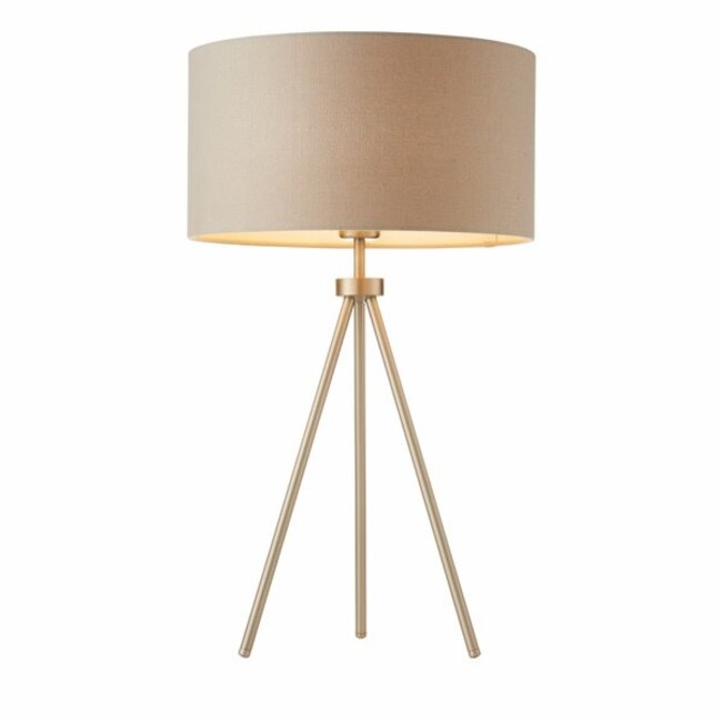 A simple yet stylish table light in a tripod design with a matt nickel finish, and teamed with a grey linen effect shade. Compatible with LED lamps and matching items available.