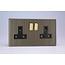 Varilight Urban Screwless 2-Gang 13A Double Pole Switched Socket with Metal Rockers Black/Brass Antique Brass Black/Brass