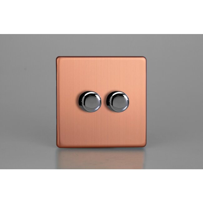 Varilight Urban Screwless 2-Gang 2-Way Push-On/Off Rotary LED Dimmer 2 x 0-120W (1-10 LEDs) V-Pro Brushed Copper Iridium Knobs